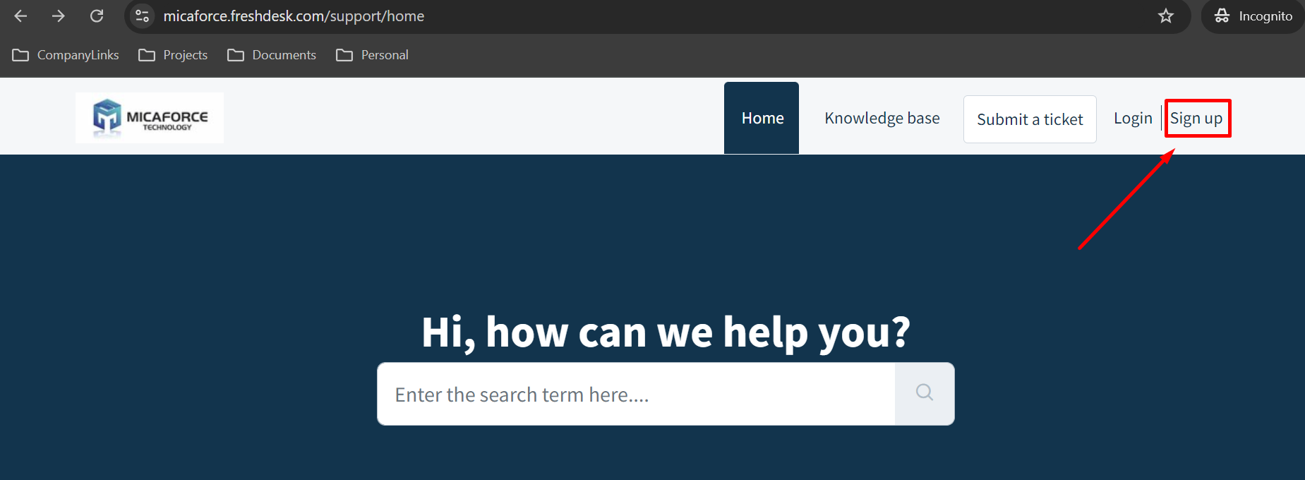 - If above link does not automatically redirect, you can go to https://micaforce.freshdesk.com instead.
